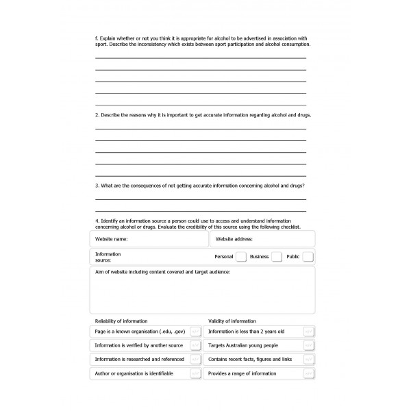 Australian Curriculum Health Education Years 9 and 10 Practical Workbook