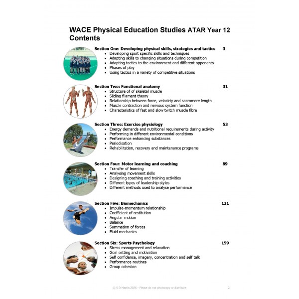 Teachers guides are packed with additional curriculum specific content to assist teachers in delivering WACE ATAR Year 12 curriculum. Many WACE ATAR Year 12 activities are scaffolded with prompts which direct students and teachers towards subject specific content and also encourage effective short answer writing structure. Our resources are packed full of 'live' graphics and re-written every year specifically for the WACE Physical Education Studies ATAR Year 12 curriculum. Printed in black and white with plasticoil binding. Because we 'print to order', a $5.00 surcharge applies on all books ordered after December 1. ISBN: 978-0-9922943-9-7. Pagnation: 198 pages.